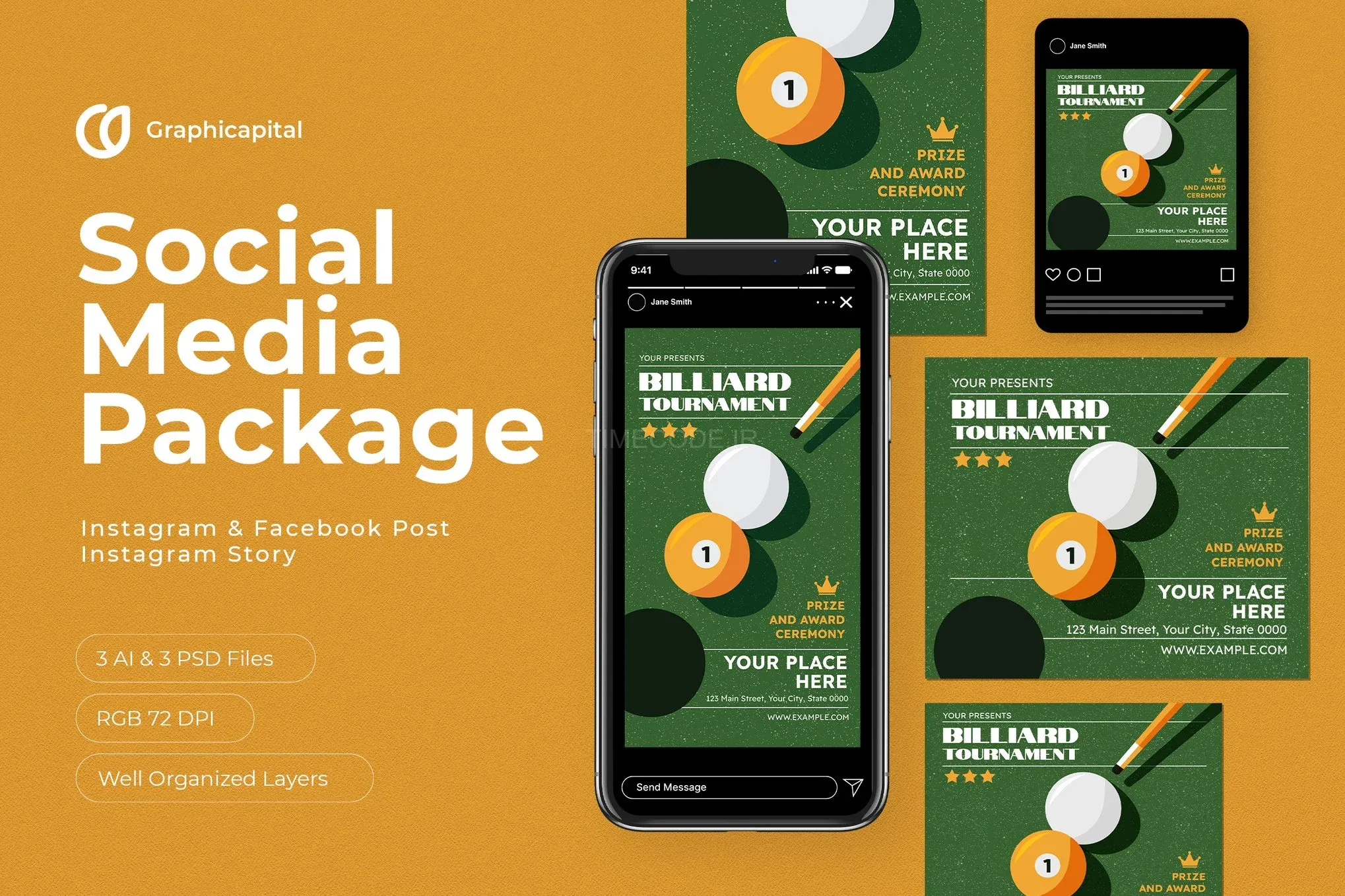 قالب پست و استوری اینستاگرام مسابقات بیلیارد